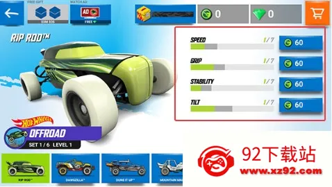 3、点击升级按钮使用游戏金币强化车辆性能,可提升引擎马力或改善轮胎抓地力等属性。