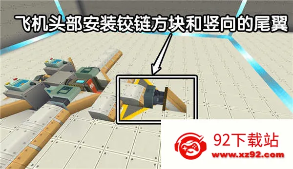 参考下图布局,将铰链方块与尾翼组合,通过两个独立动作序列器分别连接驾驶座左/右按键,设定30度偏转角度——飞行中轻按方向键,即可实现灵敏可控的空中转向。