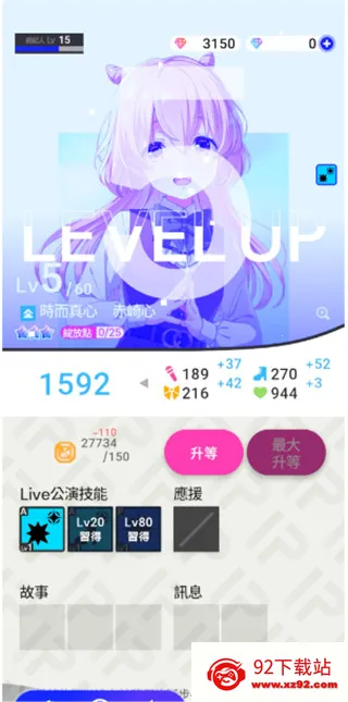 1、独特的偶像养成体验:玩家可作为经纪人,协助偶像完成各种工作,感受她们的成长过程,还能通过多种方式提升偶像等级,开放新剧情等,比如偶像课程能提升等级,等级上升可开放能力值上升学习等效果。