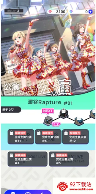 主要演唱会跟剧情的进展息息相关,并随难度而分区,通过后剧情就会开放,也会拿到报酬。而且由于主要演唱会不需消耗道具就能挑战,就算无法通关也能无限次挑战的设计非常体贴。