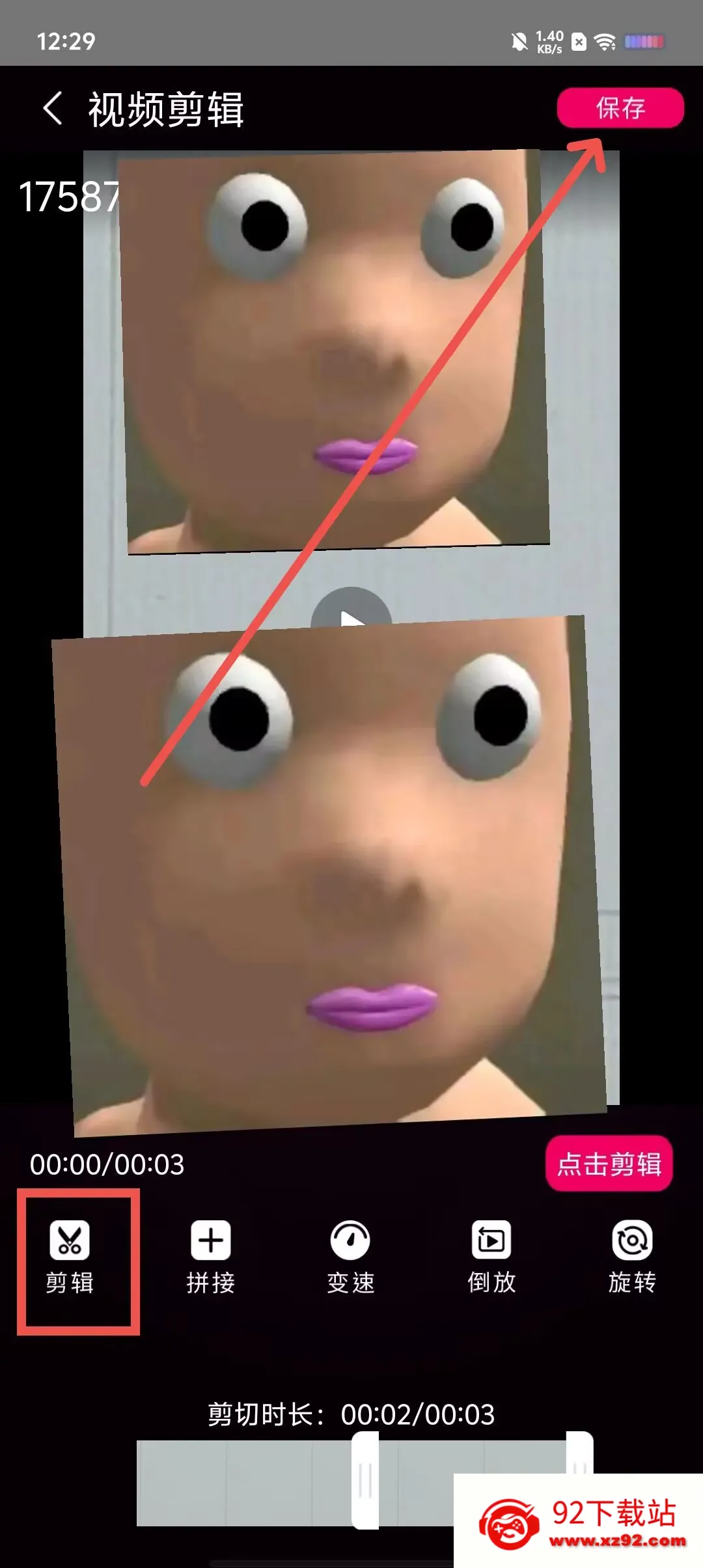 第三步,拖拽视频轨道,点击剪辑即可分割视频,点击右上角即可导出视频。
