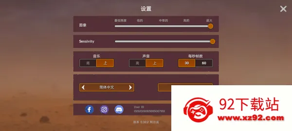 2、在游戏开始前,点击右上角设置按钮,可以在这里调整游戏画质,音效、亮度、以及语言等;