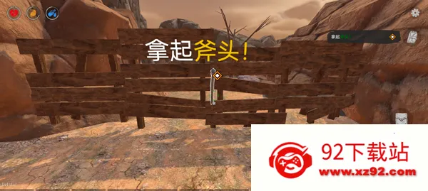 3、进行游戏如图,玩家首先需要拾取挂在木岚上的斧头,然后劈开木栏;